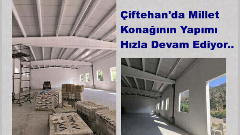 Çiftehan'da Millet Konağının Yapımı Hızla Devam Ediyor..Köyün sosyal ihtiyaçlarına cevap verecek kapalı bir mekânın ihtiyaç duyulması ile yapımına başlanan konakta sona yaklaşılıyor.