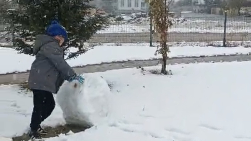 Sabah saatlerinde etkili olan kar yağışı kısa sürede cadde ve sokakları beyaza bürürken, çocuklar da ara tatili fırsat bilerek vakitlerini dışarıda geçirdi. Mevsimin ilk karını gören çocuklar kardan adam yaparak eğlenceli anlar yaşadı.